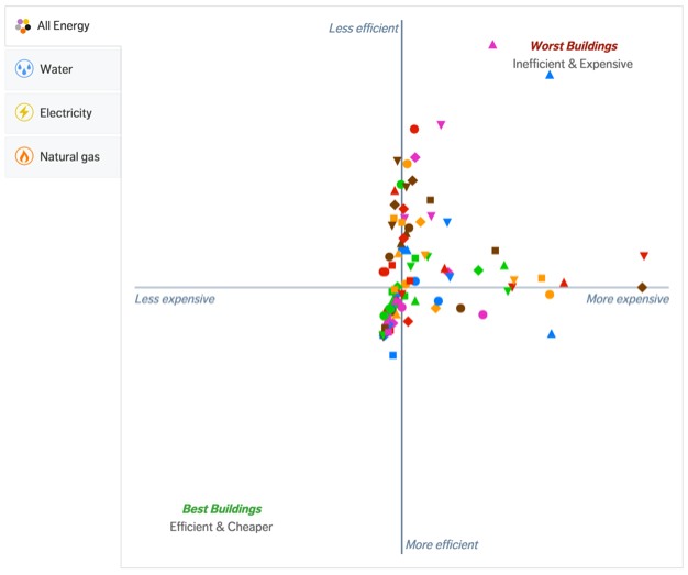 CCSM looks to the Performance Overview dashboard to highlight the properties in their 108-building portfolio that are least efficient and most expensive—the properties that offer the biggest opportunity for improvements and cost savings. From there, retrofits and operational improvements can begin!